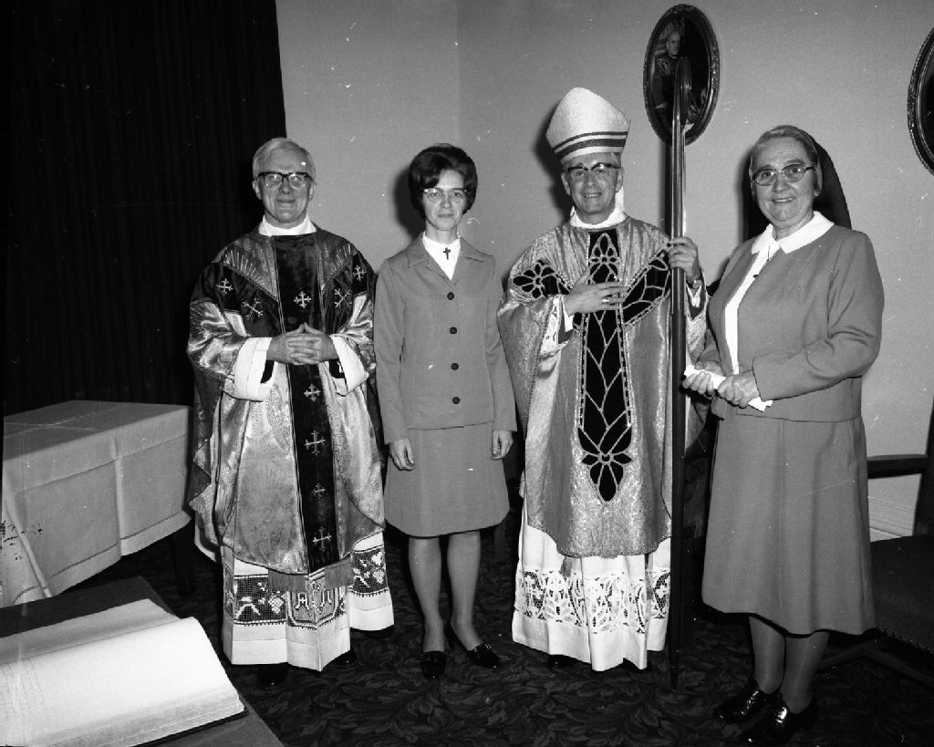 Cérémonie du rituel de profession de Soeur Marguerite Boisvert à la chapelle de la Maison-mère des Soeurs Grises de Montréal, 21 novembre 1971, Archives nationales à Montréal, Fonds Armour Landry, (06M,P97,S1,D9771-9792), Armour Landry.