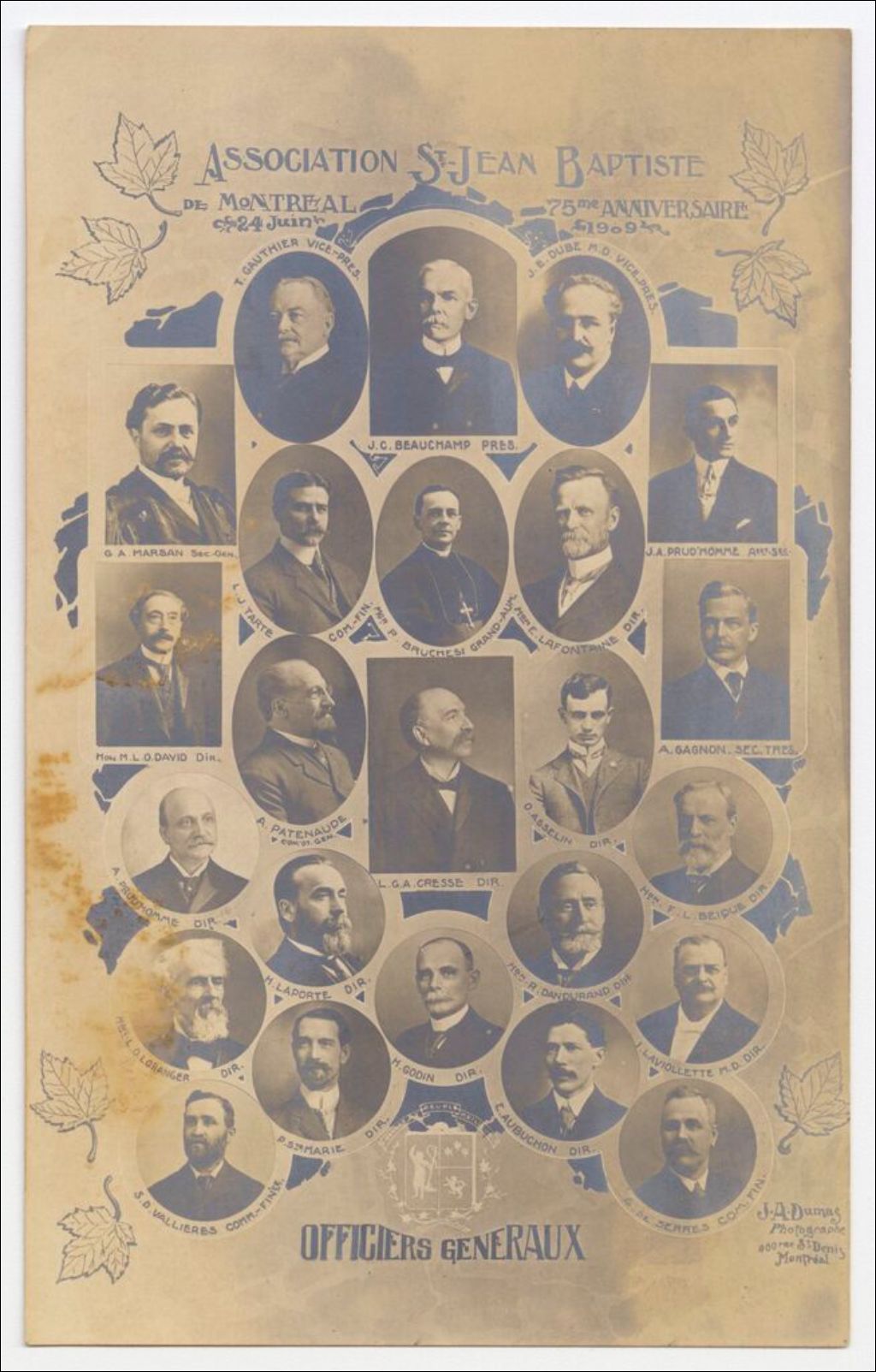 [Officiers généraux de l'Association Saint-Jean-Baptiste de Montréal le 24 juin 1909] /
