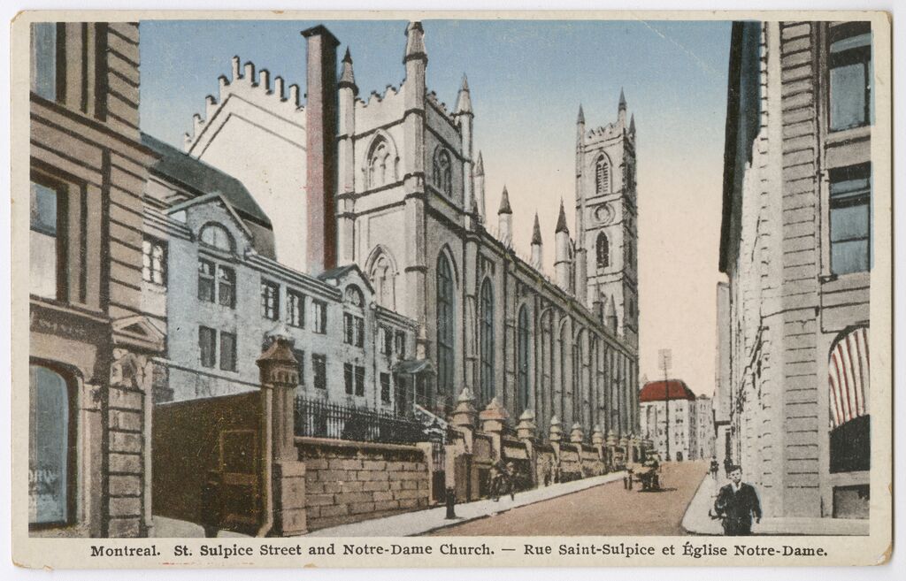 Montreal, St. Sulpice Street and Notre-Dame Church = Rue Saint-Sulpice et église Notre-Dame