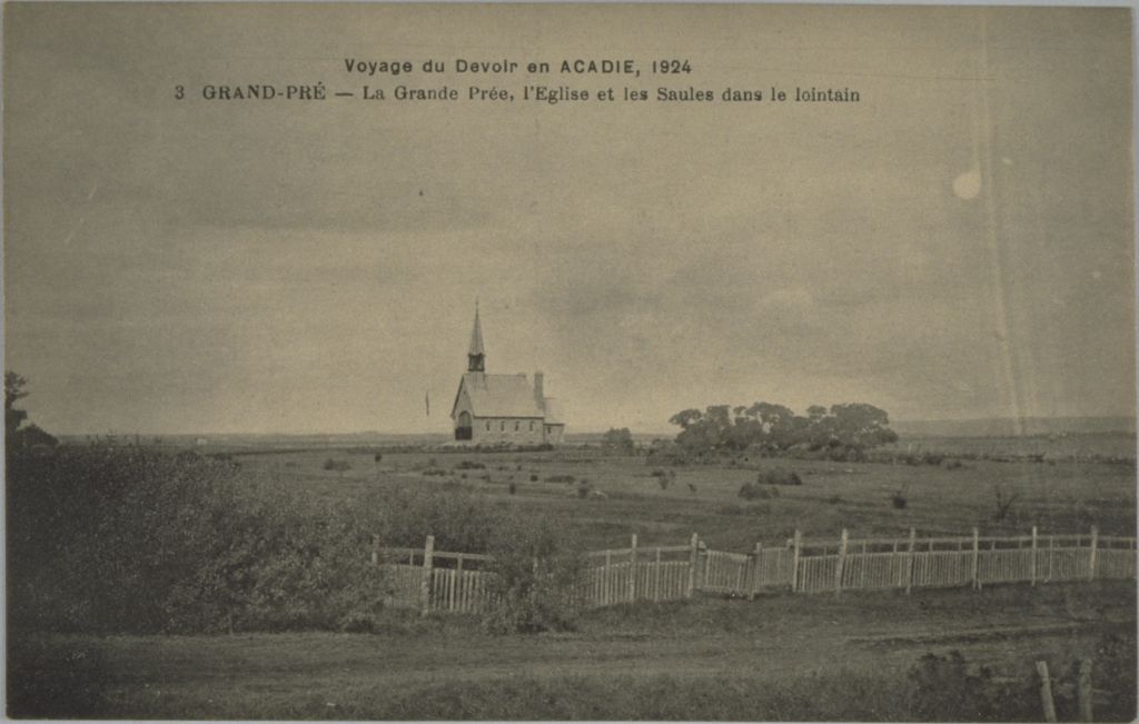 Grand-Pré - La Grande Prée, l'église et les saules dans le lointain