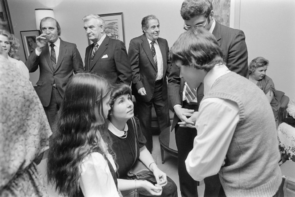 Visite au Québec d'une délégation conjointe des membres des assemblées législatives de l'Ontario et du Nouveau-Brunswick, 1983-02-11, Archives nationales à Québec, Fonds Ministère des Communications, (03Q,E10,S44,SS1,D83-60), Bernard Vallée.