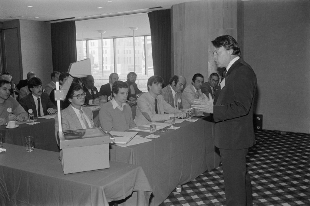 Séminaire sur l'exportation en présence de Bernard Landry, Ministre du Commerce Extérieur, 1983-10-12, Archives nationales à Québec, Fonds Ministère des Communications, (03Q,E10,S44,SS1,D83-525), Bernard Vallée.