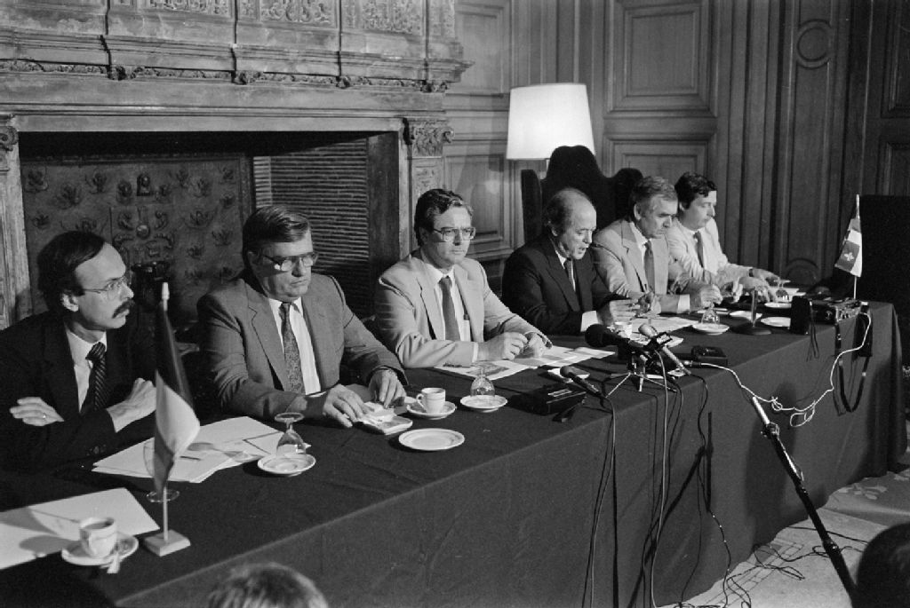 Visite officielle du Premier Ministre du Québec en France et en Suisse du 23 juin au 2 juillet : Visite de la Monnaie de Paris et conférence de presse des dirigeants de l'entreprise Péchiney, 1983-06-27, Archives nationales à Québec, Fonds Ministère des Communications, (03Q,E10,S44,SS1,D83-677), Marc Lajoie.