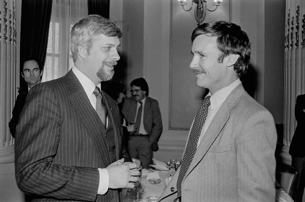 Rencontre entre Pierre-Marc Johnson, Ministre des Affaires Sociales et des éditorialistes américains au restaurant Le Parlementaire