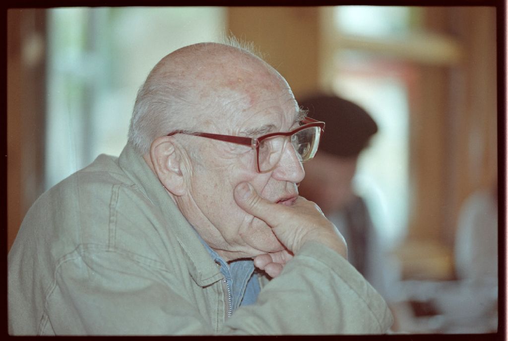 Portrait de Roger Moride, cinéaste, 28 septembre 1998, Archives nationales à Montréal, Fonds Le Devoir, (06M,P10009,S10,SS1,D6), Photographe non identifié.