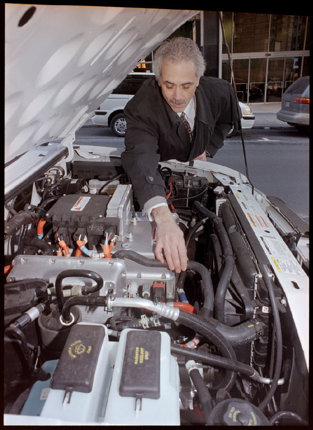 - Le dossier contient des photographies d'automobiles électriques. On y voit un jeep Marathon C-300, une Ford Think, une Toyota Prius et une Solectria d'Hydro-Québec.