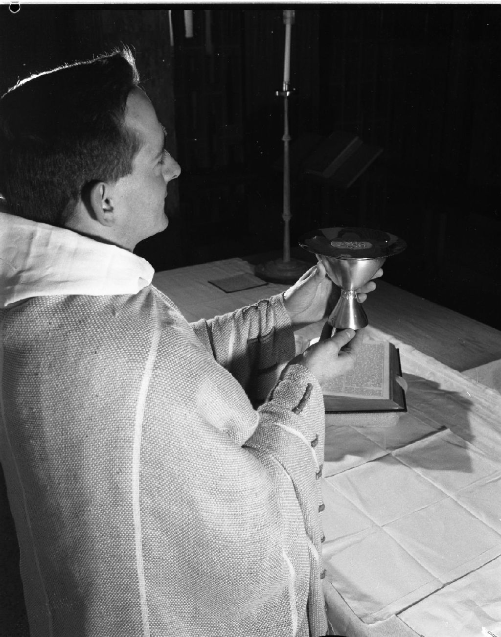 Dominicain célébrant la messe à l'occasion de la Semaine Sainte, 26 mars 1963, Archives nationales à Gatineau, Fonds Champlain Marcil, (07H,P174,S1,D29949), Marcil, Champlain.