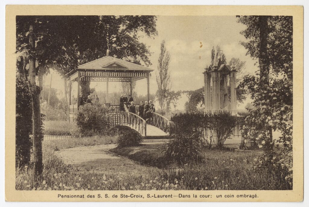 Pensionnat des S.S. de Ste-Croix, S.-Laurent : dans la cour : un coin ombragé
