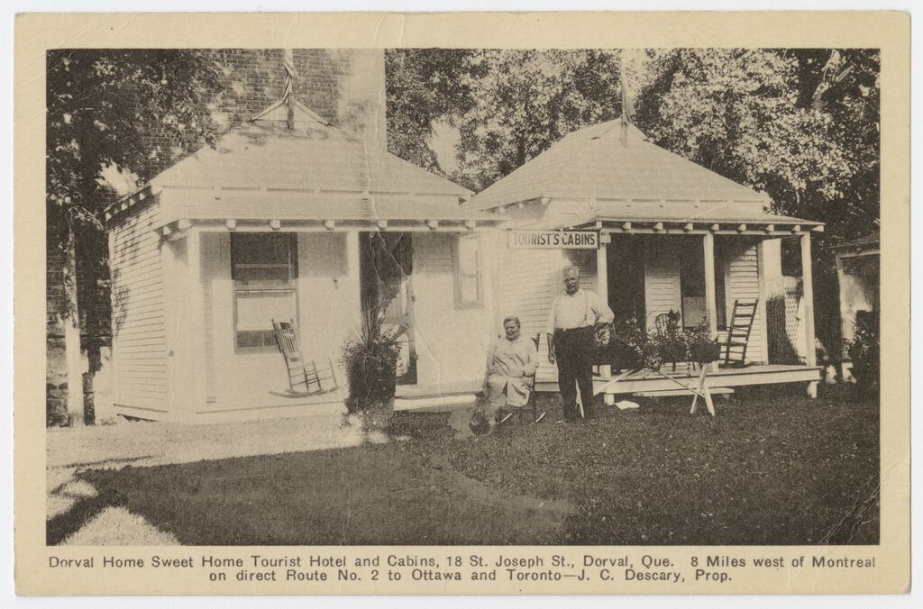 Dorval Home Sweet Home, Tourist Hotel and Cabins : 18 St. Joseph St., Dorval, Que. : 8 miles West of Montreal on direct route No. 2 to Ottawa and Toronto, J.C. Descary, prop.