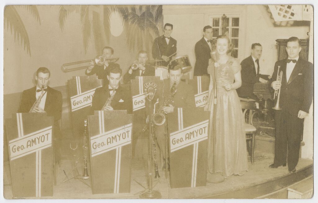 [L'orchestre Geo. Amyot se produisant dans une émission à la radio de CKCV à Québec]