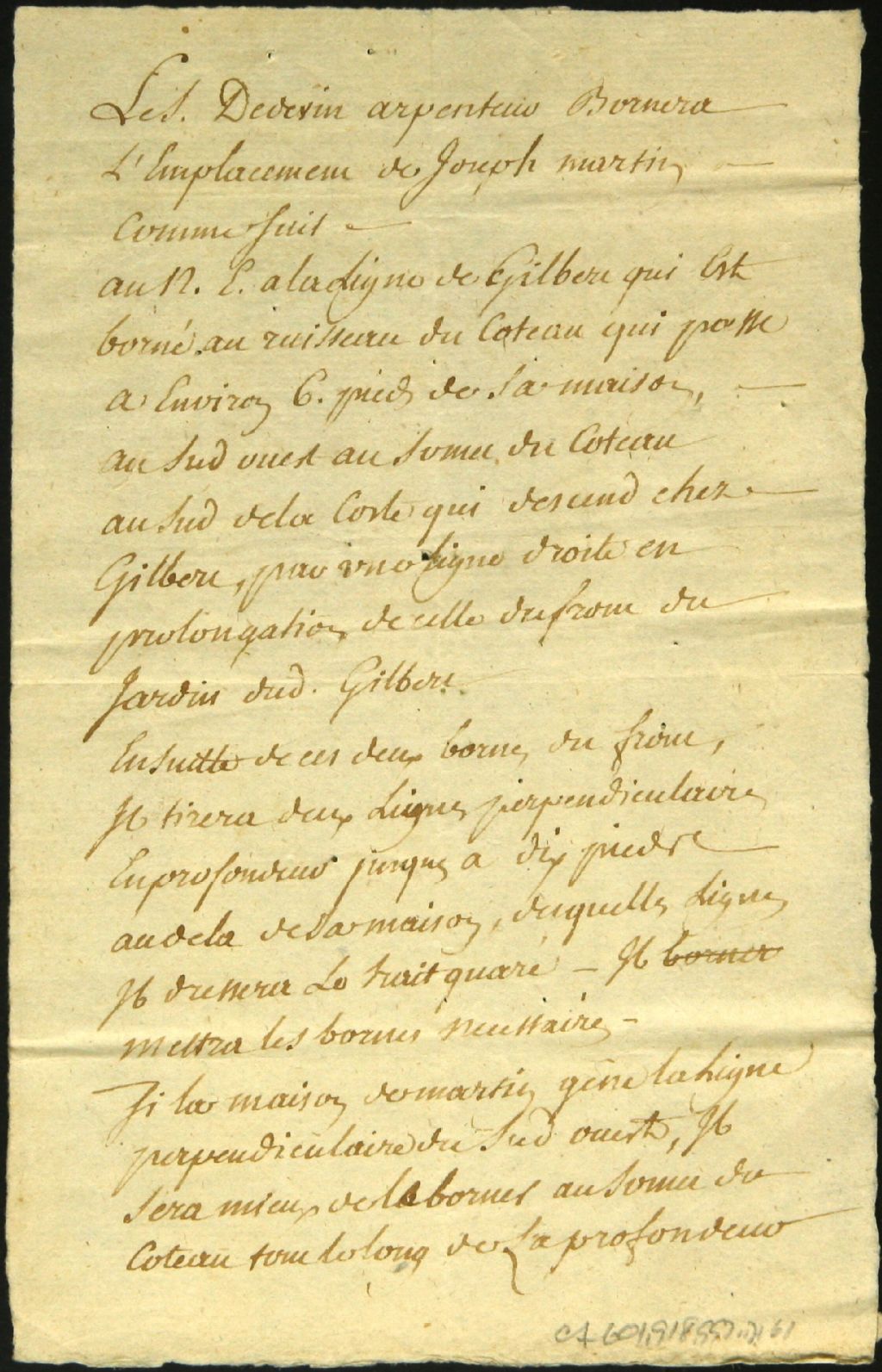 Procès-verbal d'arpentage, de bornage et plan, en vertu d'un ordre de Joseph Brassard Deschenaux, seigneur de Neuville, de la terre de Joseph Martin située dans la seigneurie de Neuville