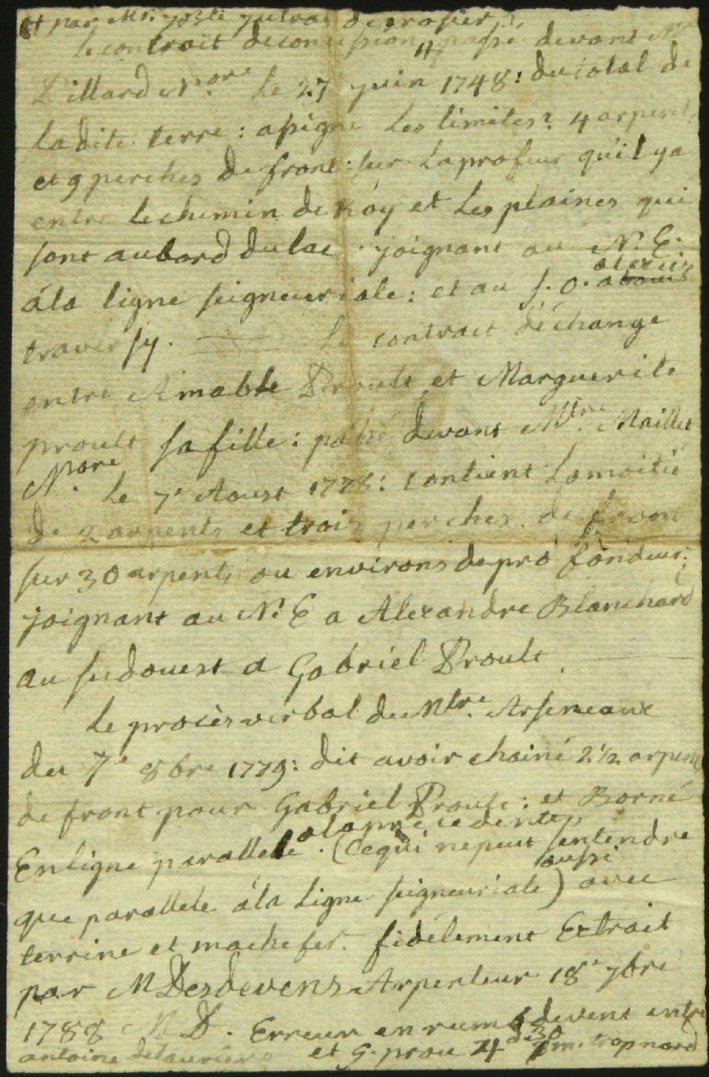 - Référence aux terrains de Louis Peron, fils, et Gabriel Proulx situés à Saint-François