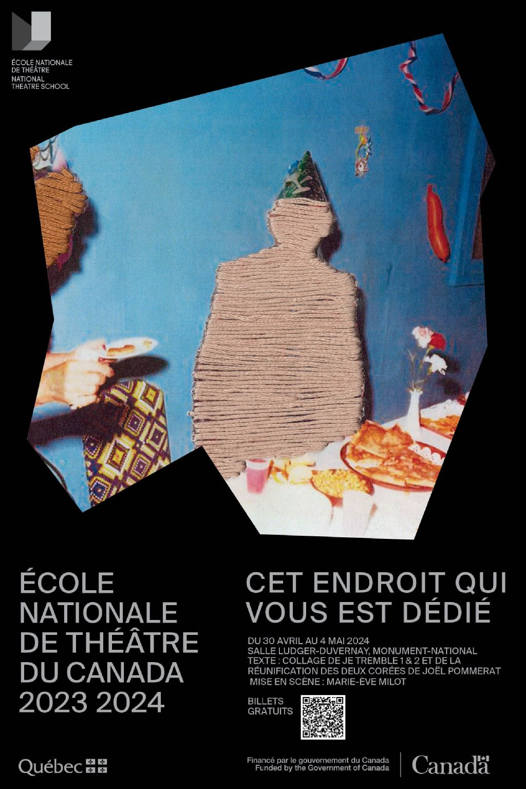 Cet endroit qui vous est dédié, du 30 avril au 4 mai 2024, Salle Ludger-Duvernay..., École nationale de théâtre du Canada, 2023 / 2024