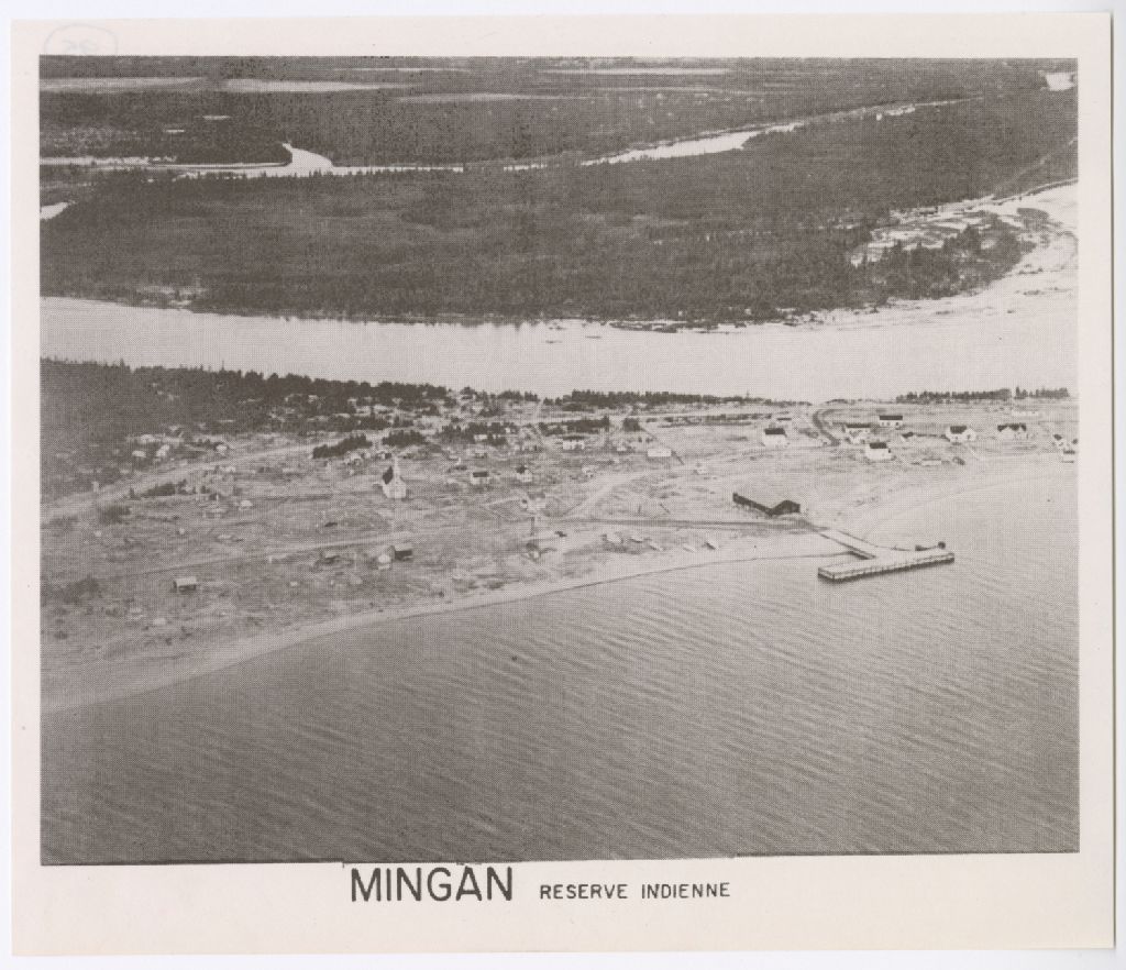 La photographie montre une vue aérienne du village de Mingan