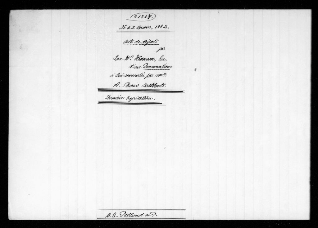 Ce dossier contient les trois actes notariés suivants : testament de James Cuthbert (1798); acte de dépôt de procuration (22 mars 1892); une dizaine d'actes concernant la seigneurie (1892-1913)