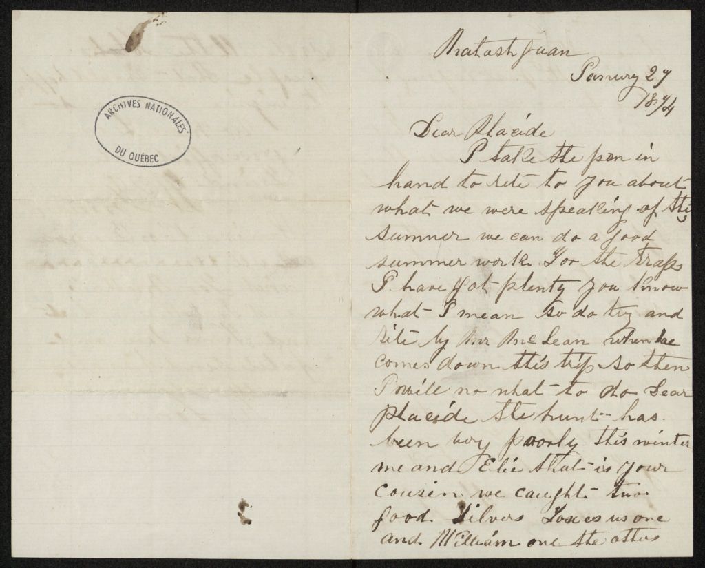 William Foreman, 1874-1884, Archives nationales à Sept-Îles, Fonds Placide Vigneau (en traitement), (09N,P48,S1,SS1,D29).