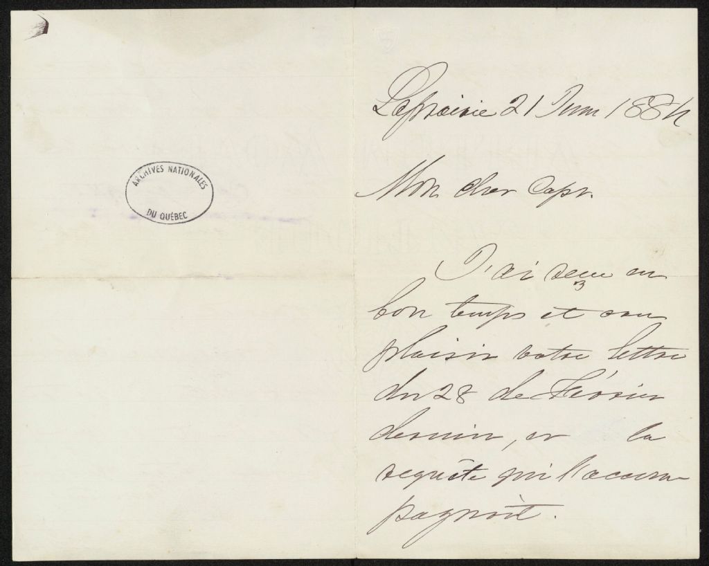 - Le dossier contient de la correspondance personnelle de Placide Vigneau en provenance Pierre Fortin, alors député de Gaspé à la Chambre des Communes à Ottawa. La correspondance concerne une requête de Placide pour un poste. Pierre Fortin mentionne qu'il a recommandé la construction d'un phare à l'île aux Perroquets au ministre de la marine.