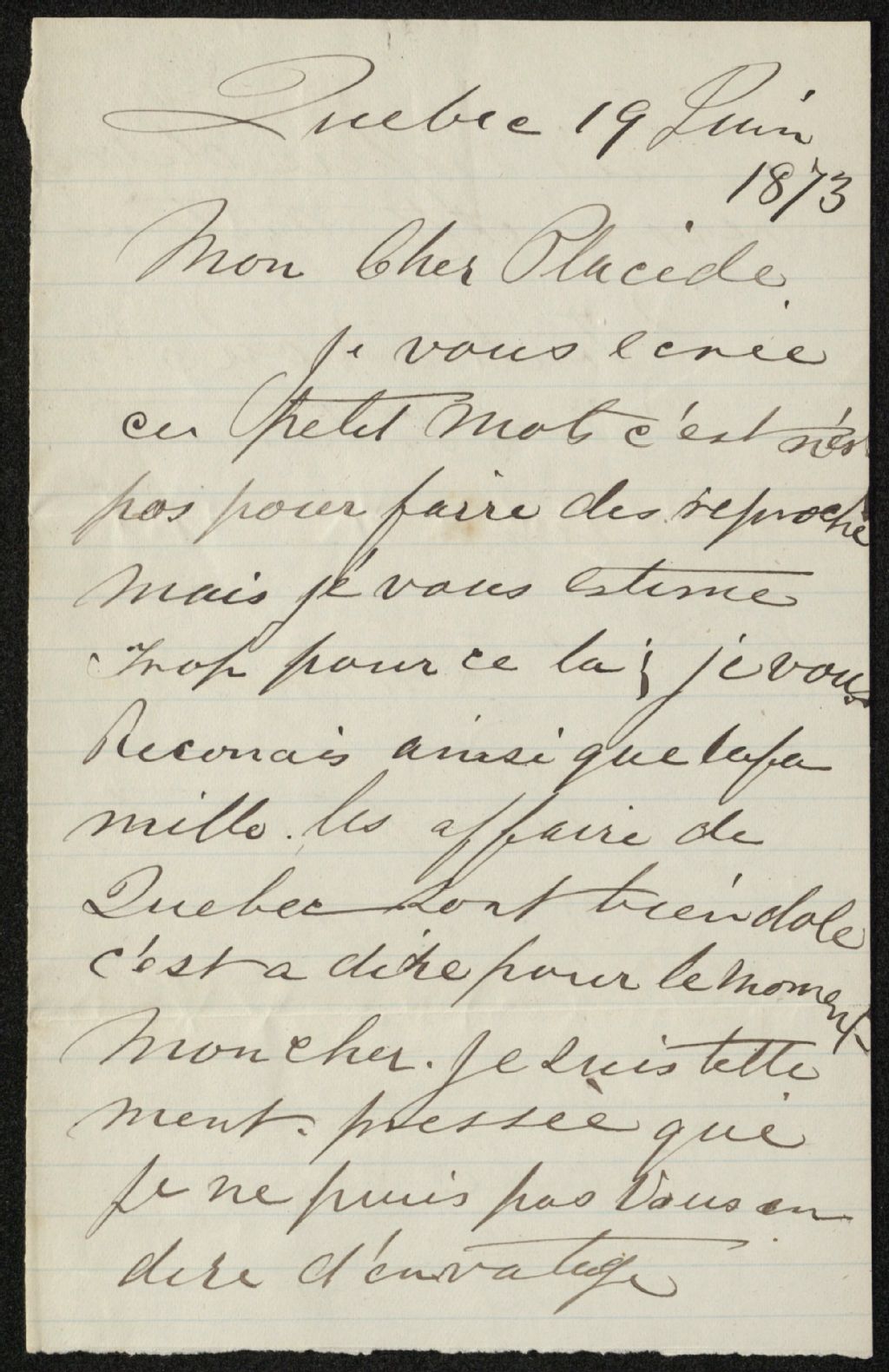 - Le dossier contient de la correspondance personnelle de Placide Vigneau en provenance de David Lacasse, percepteur des revenus des quais Renaud à Québec (décédé le 9 janvier 1893), concernant des nouvelles générales et la situation des affaires.