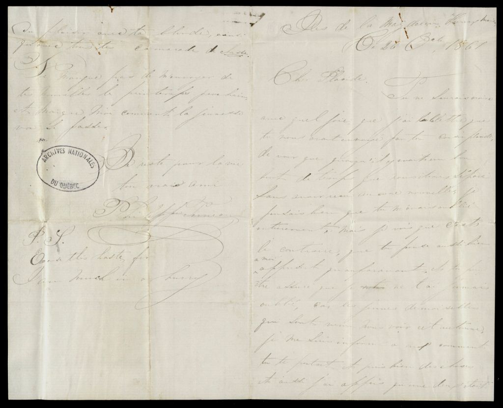 - Le dossier contient de la correspondance personnelle de Placide Vigneau en provenance de Philippe Thériault de Havre-aux-Maisons, Îles-de-la-Madeleine. Philippe est le fils de Louis Thériault et Marie Hubert. Il épouse en 1867 Philomène Paquet. La correspondance concernant des nouvelles générales (santé, famille, v¿ux), envoi de mitaines et envoi de laine, annonce de décès et de mariages, noyade de son demi-frère Bruno Thériault alors qu'il était à la pêche au maquereau, nouvelles de la pêche et de la chasse aux loups-marins, etc.