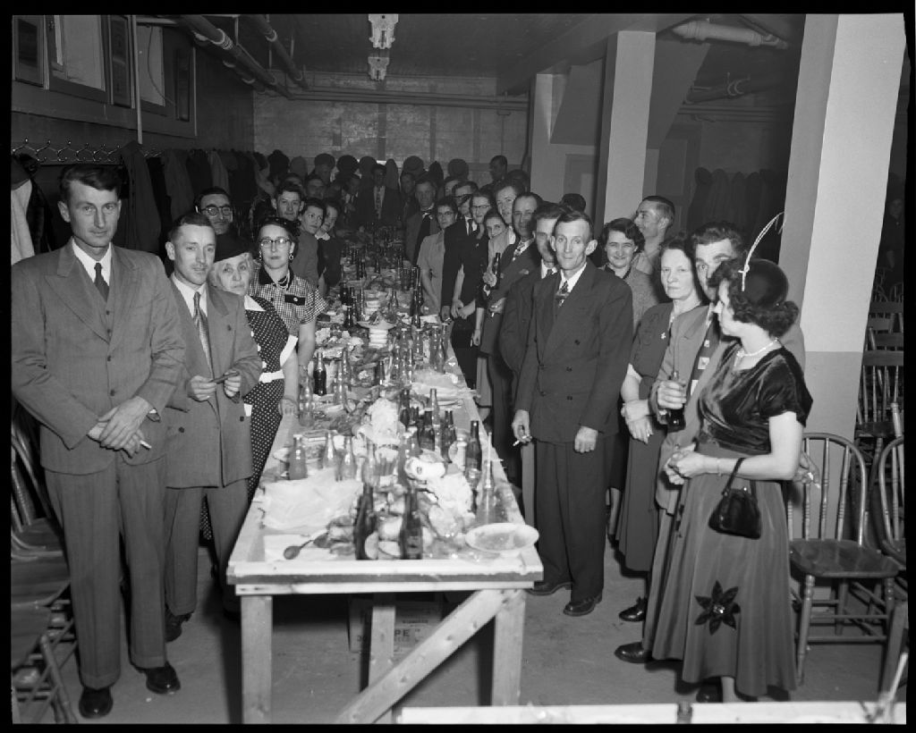 Syndicat Catholique - Banquet aux huitres, 12 octobre 1953, Archives nationales à Rimouski, Fonds J.-Gérard Lacombe, (01R,P24,S3,SS7,D208), J.-Gérard Lacombe.