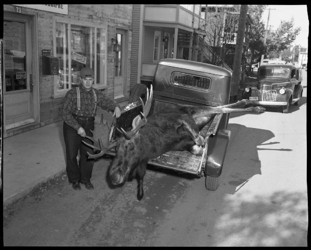 Trophée de chasse - Orignal de Jean Gagnon, 17 octobre 1953, Archives nationales à Rimouski, Fonds J.-Gérard Lacombe, (01R,P24,S3,SS7,D210), J.-Gérard Lacombe.