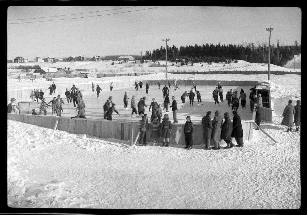 Patinoire Saint-Robert, 30 janvier 1954, Archives nationales à Rimouski, Fonds J.-Gérard Lacombe, (01R,P24,S3,SS7,D229), J.-Gérard Lacombe.