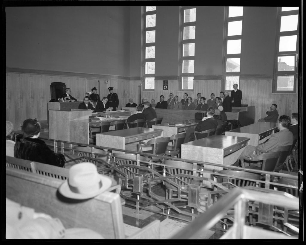 Assises criminelles au Palais de justice de Rimouski, 23 mars 1954, Archives nationales à Rimouski, Fonds J.-Gérard Lacombe, (01R,P24,S3,SS7,D234), J.-Gérard Lacombe.