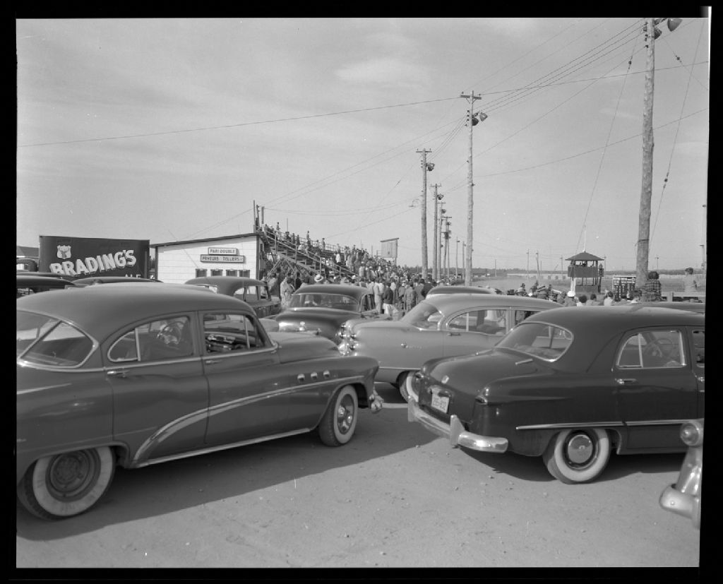 - Vu du stationnement de l'hippodrome du cheval de course "brading"