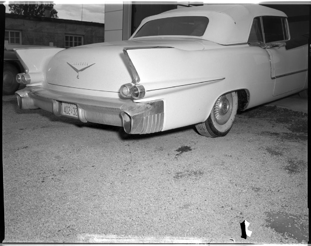 Cadillac de M. Poirier taché d'asphalte, 3 juillet 1956, Archives nationales à Rimouski, Fonds J.-Gérard Lacombe, (01R,P24,S3,SS7,D465), J.-Gérard Lacombe.