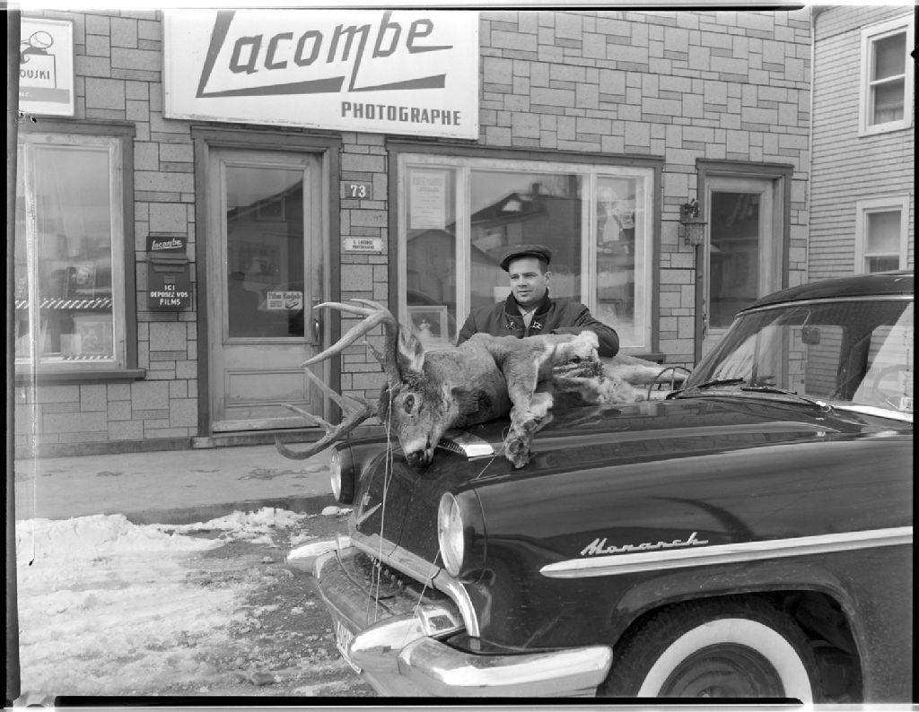 Trophée de chasse - Chevreuil de Romuald Duchesne, 19 novembre 1956, Archives nationales à Rimouski, Fonds J.-Gérard Lacombe, (01R,P24,S3,SS7,D486), J.-Gérard Lacombe.