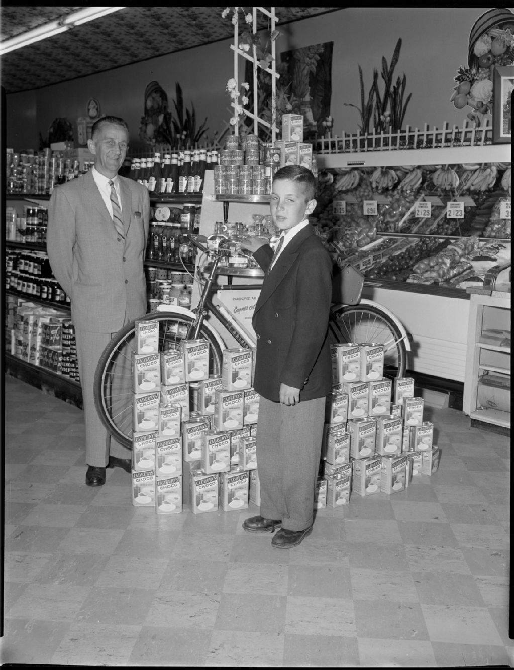 La Bonne Entente - Gagnant d'un vélo, 19 août 1958, Archives nationales à Rimouski, Fonds J.-Gérard Lacombe, (01R,P24,S3,SS7,D589), J.-Gérard Lacombe.