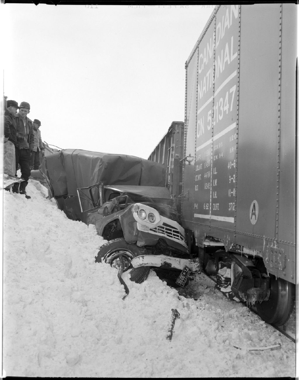 - Collision sur la rue Rouleau entre un train et un camion-frigorifique de la Crèmerie Desrosiers de Mont-Joli.