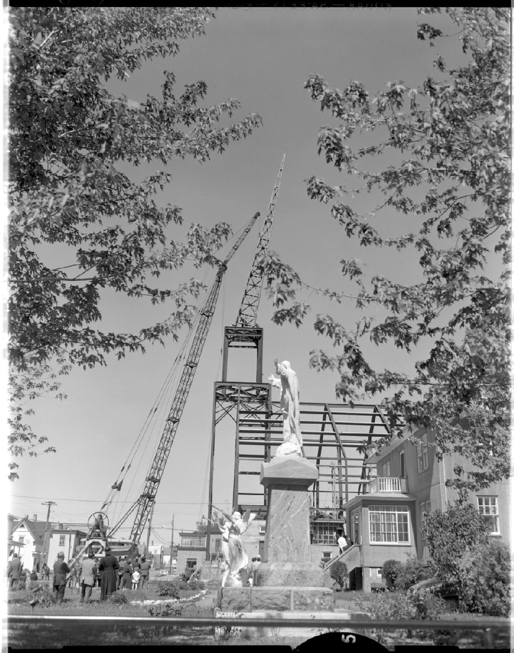 Pose du clocher de l'église de Saint-Robert, Juin 1963, Archives nationales à Rimouski, Fonds J.-Gérard Lacombe, (01R,P24,S3,SS7,D915), J.-Gérard Lacombe.