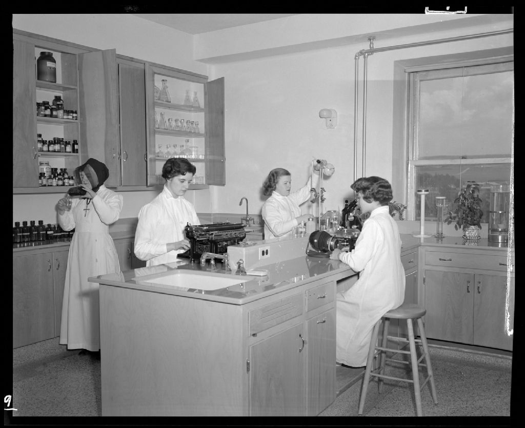 Laboratoire, 27 juin 1954, Archives nationales à Rimouski, Fonds J.-Gérard Lacombe, (01R,P24,S3,SS7,D272,P9), J.-Gérard Lacombe.