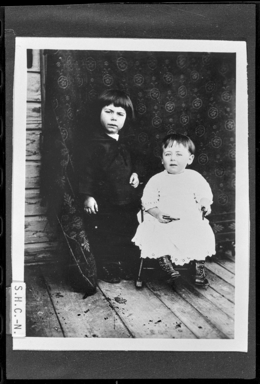 Enfants indiens, Négatif reproduit en 1980 (original créé entre 1950 et 1980), Archives nationales à Sept-Îles, Fonds Société historique de la Côte-Nord inc., (09N,P8,S1,P427), Société historique de la Côte-Nord.