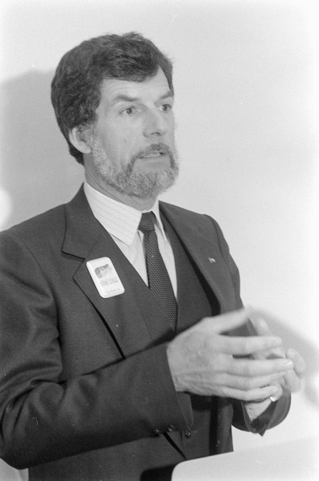 Inauguration des nouveaux bureaux de Didacticiel international et Laboratique M.L.L par le ministre de l'Industrie et du Commerce, monsieur Rodrigue Biron, 3 mai 1985, Archives nationales à Québec, Fonds Ministère des Communications, (03Q,E10,S44,SS1,D85-297), Bernard Vallée.