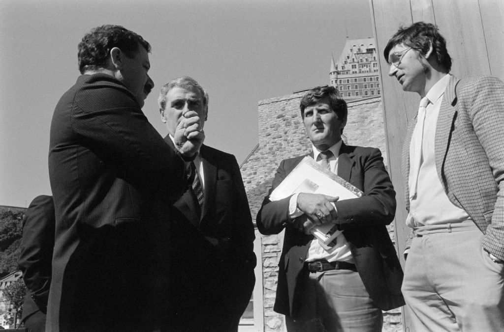 Visite au Québec du ministre belge, monsieur Féaux, en présence de monsieur Jacques Brassard ministre du Loisir, Chasse et Pêche