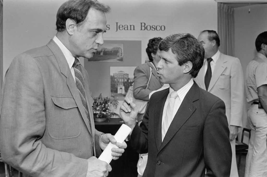 Conférence de presse annonçant une subvention de la Société d'habitation du Québec aux Jardins Jean Bosco avec la présence de Jean-François Bertrand, 11 juillet 1985, Archives nationales à Québec, Fonds Ministère des Communications, (03Q,E10,S44,SS1,D85-457), Clément Allard.