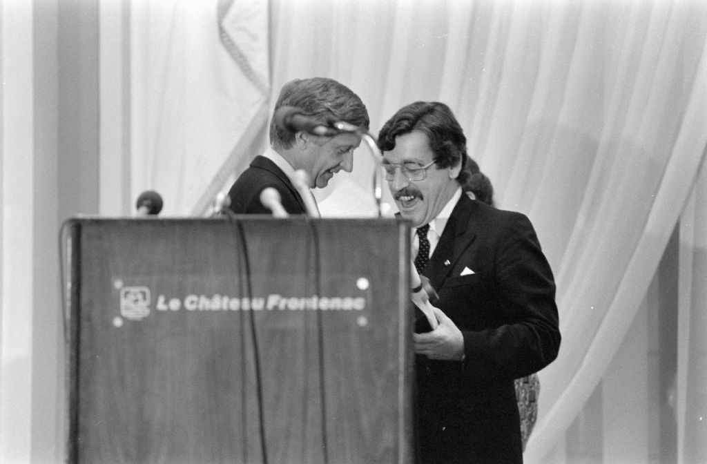 Le Premier ministre René Lévesque et le ministre des Affaires culturelles, monsieur Clément Richard, procèdent à la remise des Prix du Québec