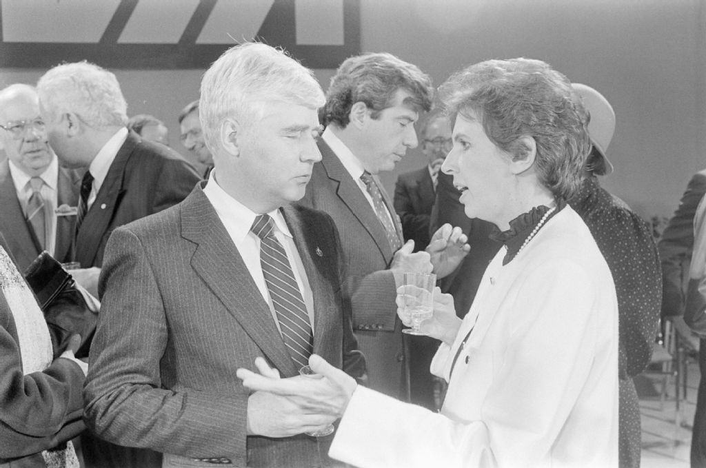 Cérémonie de l'ouverture de la gare intermodale (Gare du Palais) à Québec, 8 novembre 1985, Archives nationales à Québec, Fonds Ministère des Communications, (03Q,E10,S44,SS1,D85-801), Marc Lajoie.