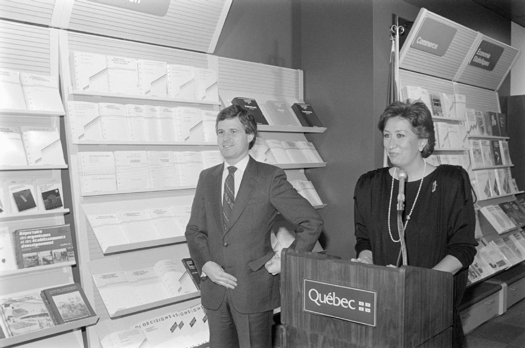 Inauguration d'un magasin Les Publications du Québec aux Galeries de la Capitale, 14 novembre 1985, Archives nationales à Québec, Fonds Ministère des Communications, (03Q,E10,S44,SS1,D85-807), Bernard Vallée.