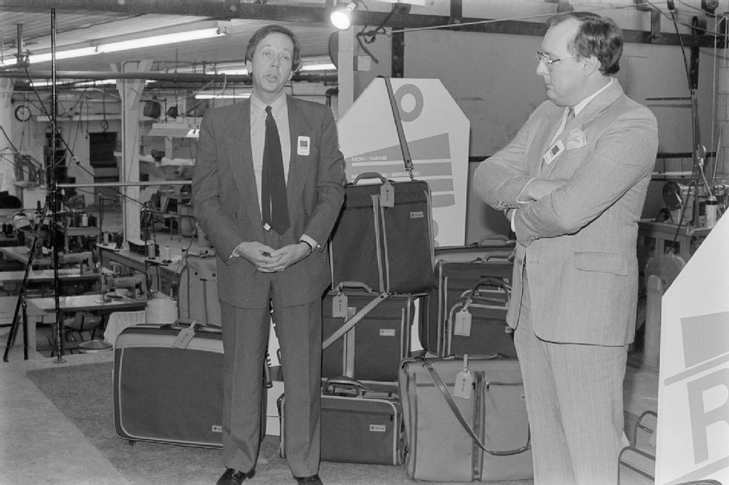 Visites industrielles dans le cadre de la semaine de l'entreprise avec André Vallerand, ministre délégué aux P.M.E., 6 mai 1986, Archives nationales à Québec, Fonds Ministère des Communications, (03Q,E10,S44,SS1,D86-237), Bernard Vallée.