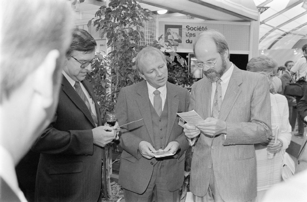 - Ouverture officielle des kiosques d'Expo-Québec dans la tente gouvernementale : le ministre des Communications, Richard French fait la tournée avec François Reny et J.P. Lemonde