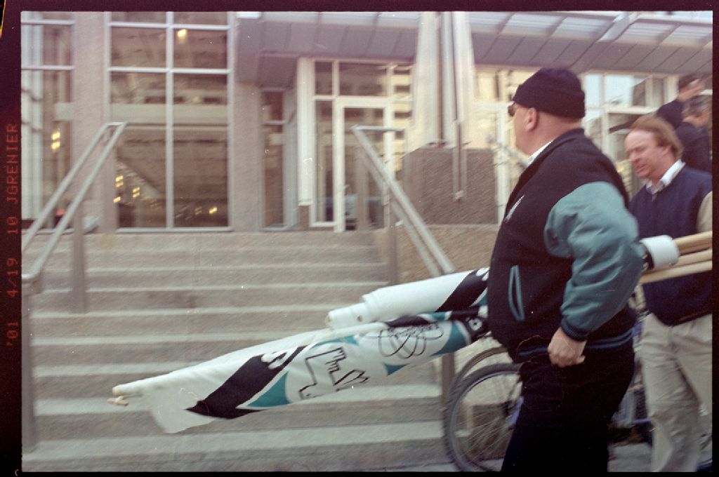 - Manifestations des travailleurs du papier devant les bureaux de la Domtar, rue Sherbrooke ouest