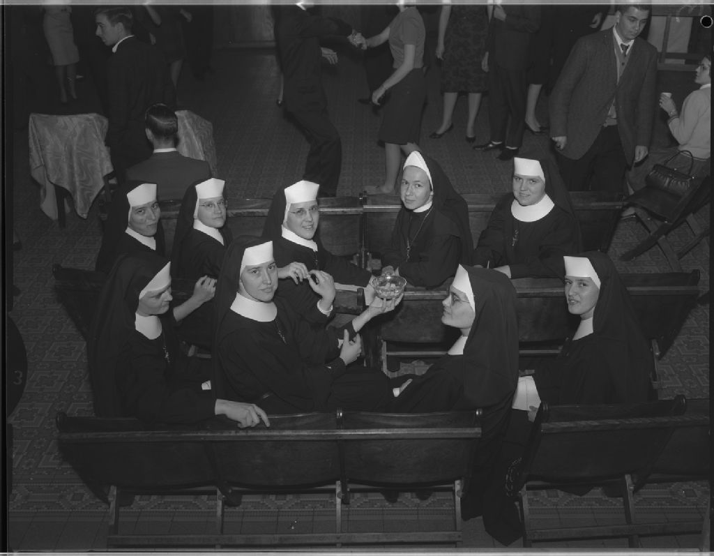 Réception à une école normale, 23 novembre 1962, Archives nationales à Gatineau, Fonds Champlain Marcil, (07H,P174,S1,D28835), Attribuée à Champlain Marcil.