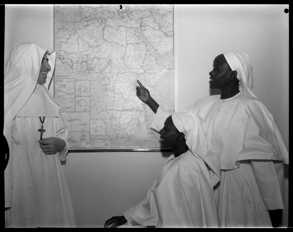 Deux Soeurs Blanches d'Afrique, 6 décembre 1962, Archives nationales à Gatineau, Fonds Champlain Marcil, (07H,P174,S1,D28952), Attribuée à Champlain Marcil.