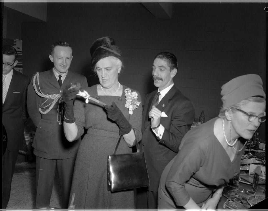 Mme Georges Vanier (Pauline Archer) à la Faculté de médecine de l'Université d'Ottawa, 10 décembre 1962, Archives nationales à Gatineau, Fonds Champlain Marcil, (07H,P174,S1,D28981), Attribuée à Champlain Marcil.