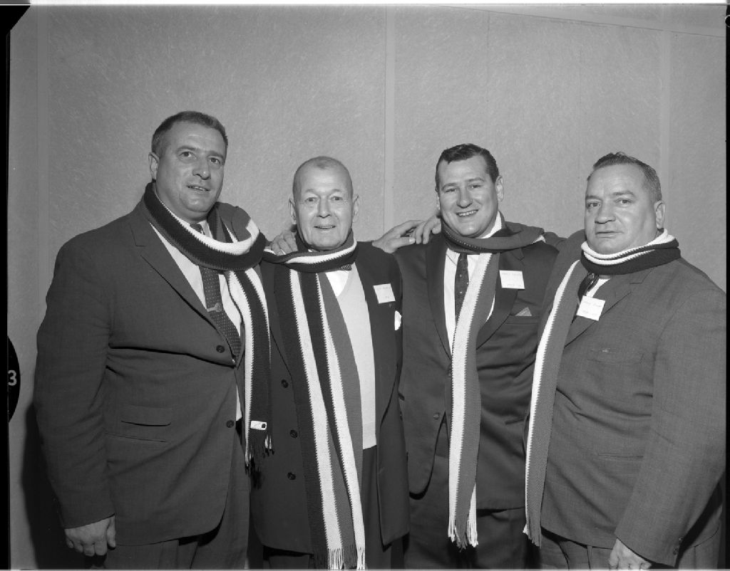 Réunion des anciens joueurs des Rough Riders d'Ottawa au Parc Lansdowne, 13 octobre 1962, Archives nationales à Gatineau, Fonds Champlain Marcil, (07H,P174,S1,D28508), Attribuée à Champlain Marcil.