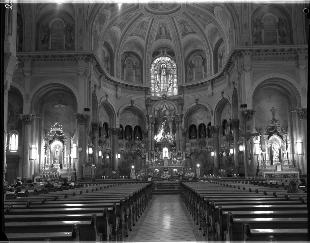 Intérieur de l'église Sacré-Coeur d'Ottawa, 17 novembre 1962, Archives nationales à Gatineau, Fonds Champlain Marcil, (07H,P174,S1,D28779), Attribuée à Champlain Marcil.