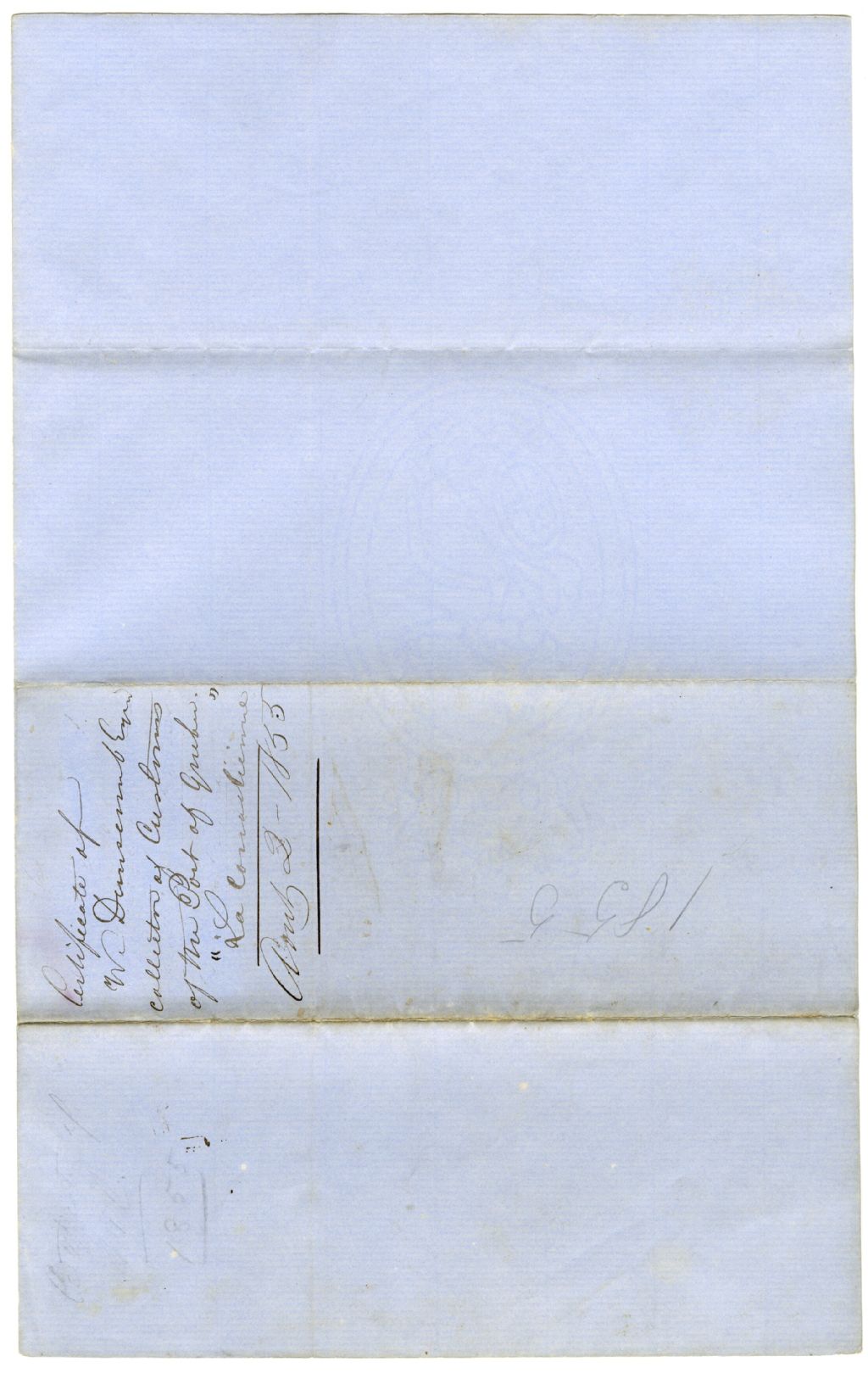 - Certificate of W Dunsement (?) Esquire collector Customs of the Port of Quebec